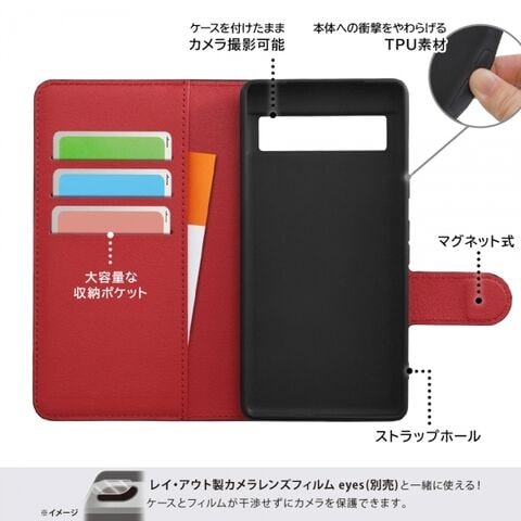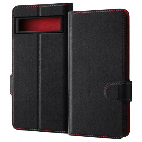レイアウト Google Pixel 7a用 耐衝撃 手帳型レザーケース シンプル マグネット(ブラック/レッド) RT-GP7AELC1/BR 【返品種別A】