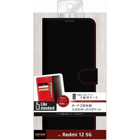 レイアウト Redmi 12 5G(XIG03)用 Like standard 手帳型レザーケース シンプル マグネット(ブラック/レッド) RT-XR12ELC1/BR 【返品種別A】