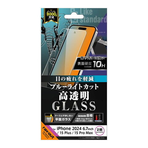 レイアウト iPhone 16 Plus/15 Plus/15 Pro Max用 Like standard 液晶保護ガラスフィルム ブルーライトカット 光沢 平面保護 硬度10H RT-P48F/SMG 【返品種別A】