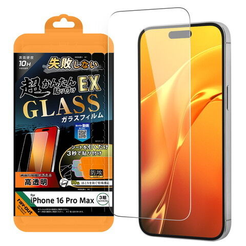 レイアウト iPhone 16 Pro Max用 Like standard ガラスフィルム 光沢 失敗しない 超かんたん貼り付けEX キット付き 硬度10H RT-P49FK2/SCG 【返品種別A】