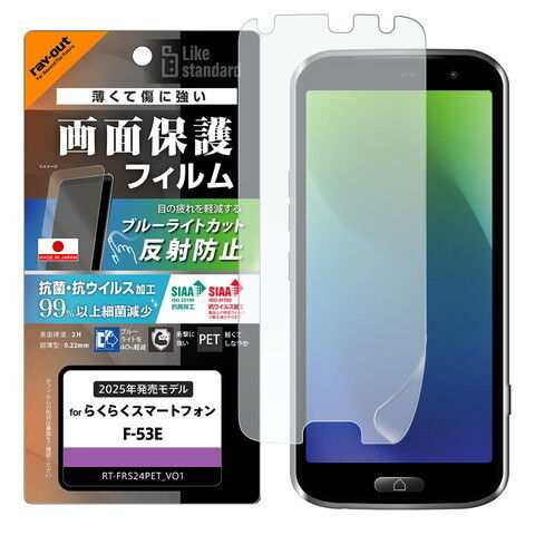 レイアウト らくらくスマートフォン F-53E用 Like standard PETフィルム ブルーライトカット 反射防止 衝撃吸収 抗菌・抗ウイルス 平面保護 指紋防止 RT-FRS24F/DK 【返品種別A】