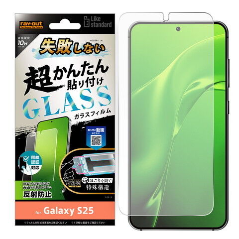 レイアウト Galaxy S25用 失敗しない 超かんたん貼り付け キット付き ガラスフィルム 10H 反射防止 指紋認証対応 Like standard RT-GS25FK/FHG 【返品種別A】