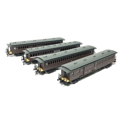 九州鉄道にて明治30 年頃から活躍していたボギー客車を手ごろな4両セット(ハニ1、ハ8、イロブ1、ハブ12)にまとめました。