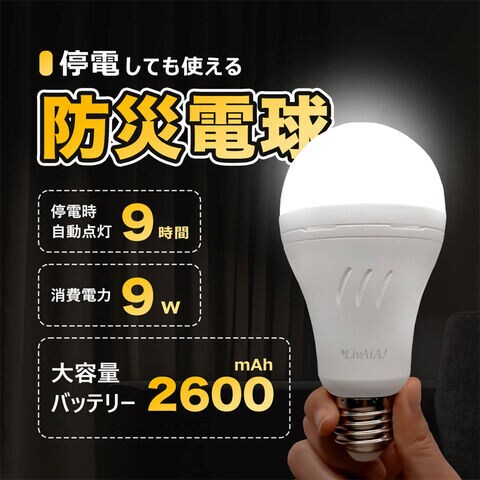 LivAiA! LED防災電球(電球色) 810ルーメン/360ルーメン 2600mAh リバイア リヴァイア FF-01D-O 【返品種別A】