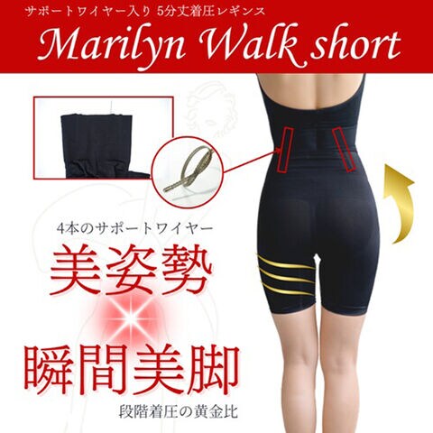 モンステラ 着圧レギンス 5分丈【Lサイズ】 MONSTELLA マリリンウォーク ショート 美姿勢×美脚レギンス TL-MRWKHF_L/BK 【返品種別B】