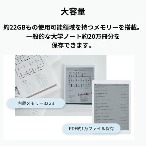 - 内蔵メモリーに保存可能なPDFのファイル数:約10000ファイル(1ファイルあたり約2.2MBのPDFファイル)