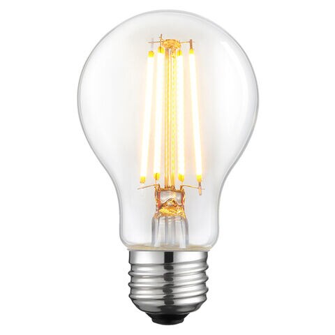 伝統的な白熱電球のような見た目のLED調光フィラメント電球は、