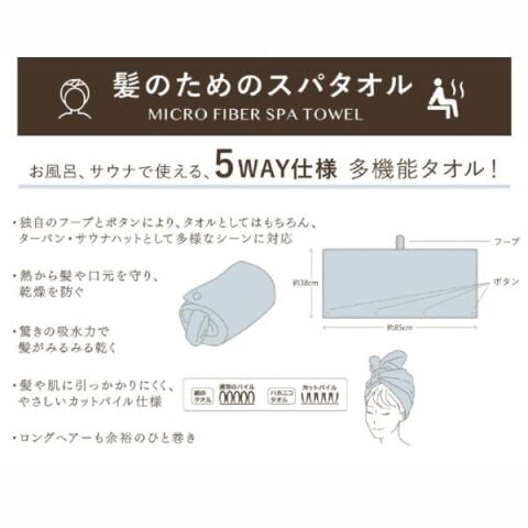 ◆独自のフープとボタンにより、タオルとしてはもちろん、ターバン・サウナハットとして多様なシーンに対応。