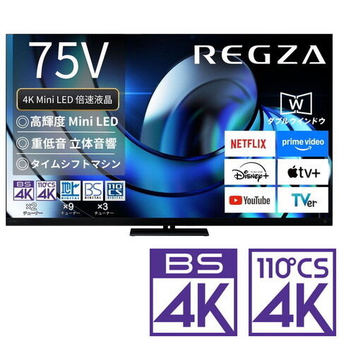 REGZA(レグザ) 75V型 Mini LED液晶テレビ[BS・CS 4Kチューナー内蔵 /タイムシフトマシン搭載] REGZA Z8シリーズ 75Z875R 【返品種別A】