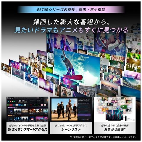 ・4K放送2番組同時録画:-※USBハードディスク(別売)接続時に対応しています。4K放送録画中は一部機能に制限が生じることがあります。