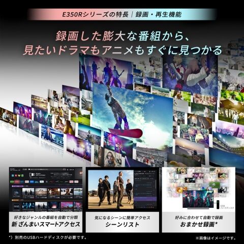 ・4K放送2番組同時録画:-※USBハードディスク(別売)接続時に対応しています。4K放送録画中は一部機能に制限が生じることがあります。