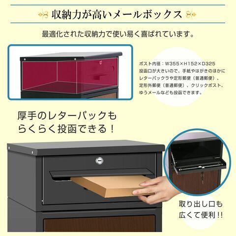 - 郵便投函口(約):幅280×高さ30×奥行き320mm
