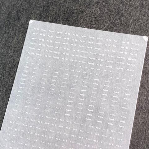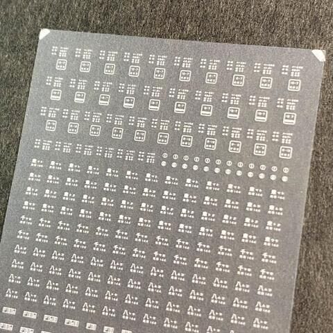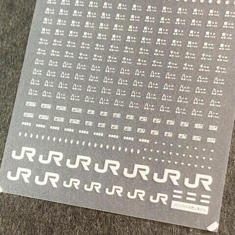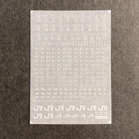 世田谷車両のNゲージ用車両パーツ、103系・201系車体標記インレタ(白) です。