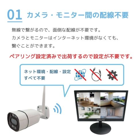 電源の確保さえできればLANケーブルの配線工事は不要、ワイヤレス対応なので無線で接続できます。