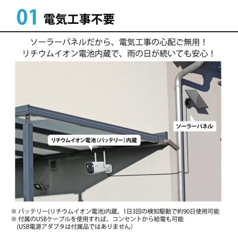◆ソーラーパネル給電なので常時コンセント不要。災害時にも活躍