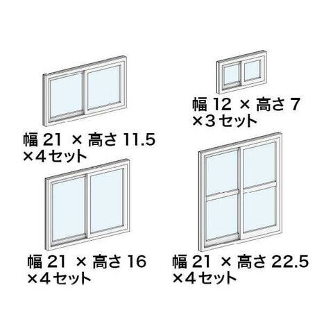 スケール : 1/83 商品形態 : ペーパー製組み立てキット 完成サイズ : 幅21mm×高さ11.5mm×(4セット入り)、幅12mm×高さ7mm×(3セット入り)、幅21mm×高さ16mm×(4セット入り)、幅21mm×高さ22.5mm×(4セット入り)