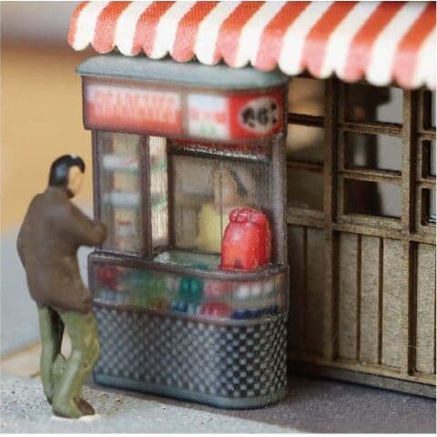 お手持ちのストラクチャーに取り付けるだけで、懐かしいたばこ屋の情景が完成します。