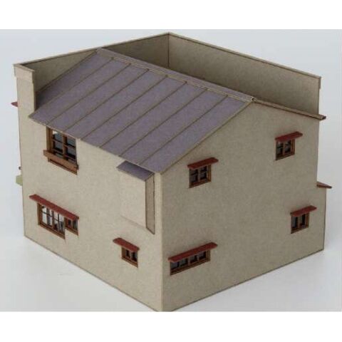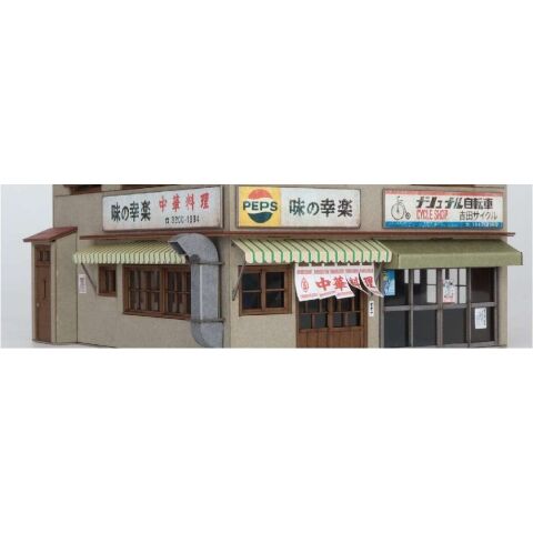 1階に店舗が入った、モルタル仕上げの2軒長屋キットです。