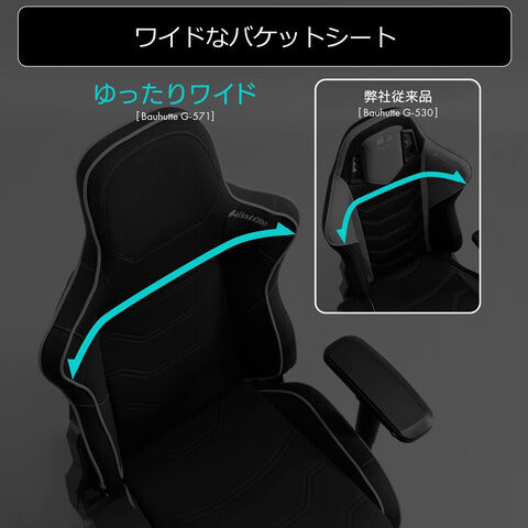 ゲーミング座椅子ならではのバケットシートが窮屈に感じやすい大柄な人でも、 ゆったりと身体をあずけることが可能です。