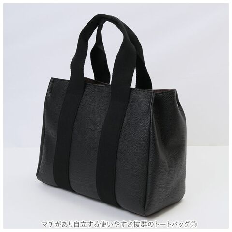 収納部分がT字の仕切りで3つに区切られているので、何がどこにあるのか一目でわかりやすい! マチがあり自立する使いやすさ抜群のトートバッグ◎