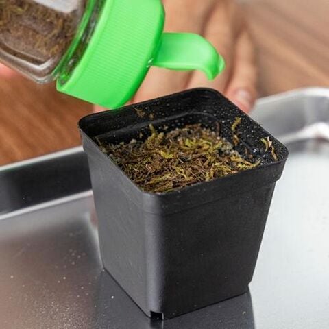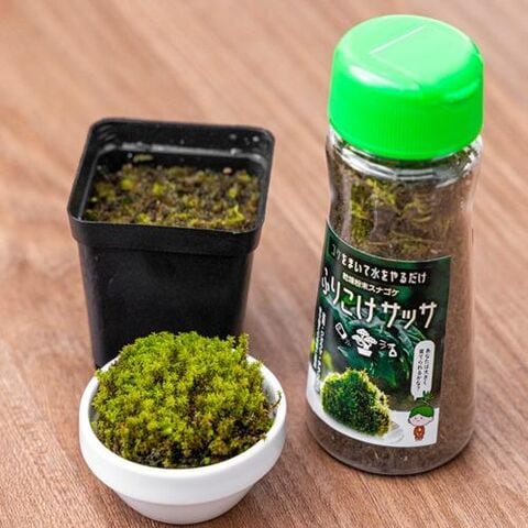 ◆さっとひとふり振りかけるだけで、青々とした本物の苔が。