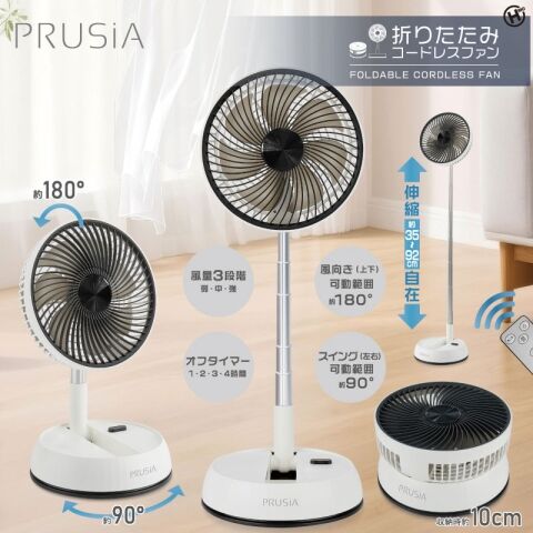 ヒロコーポレーション 【扇風機】リビング扇(ホワイト) PRUSIA 折りたたみコードレスファン HDL-2345 【返品種別A】