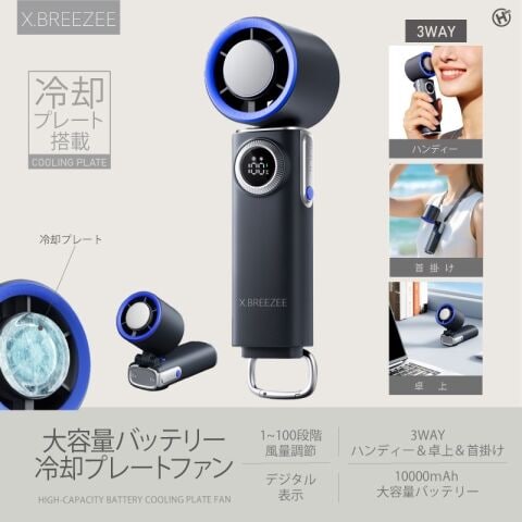 ヒロコーポレーション 携帯扇風機(ダークグレー) X.BREEZEE 大容量バッテリー冷却プレートファン HDL-3625 【返品種別A】