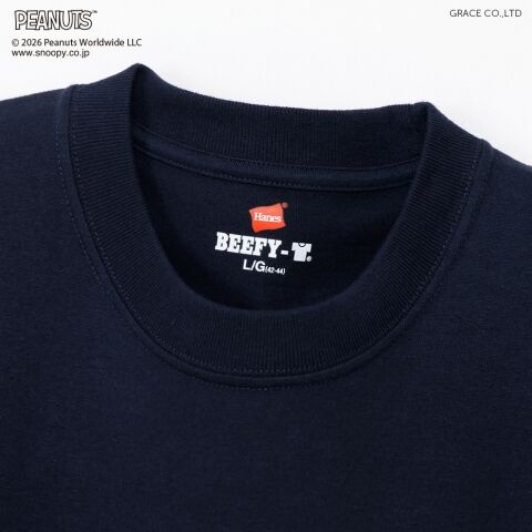 ヘインズ ビーフィーTシャツ PEANUTS x BEEFY-T クルーネックTシャツ 26SS(ネイビー・サイズ:M) Hanes HM1D002370M 【返品種別A】