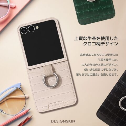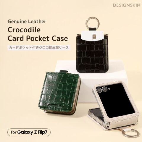 Design Skin Galaxy Z Flip7用 カードポケット付きクロコ柄本革ケース(ブラック) DSK28049GZFP7 【返品種別A】