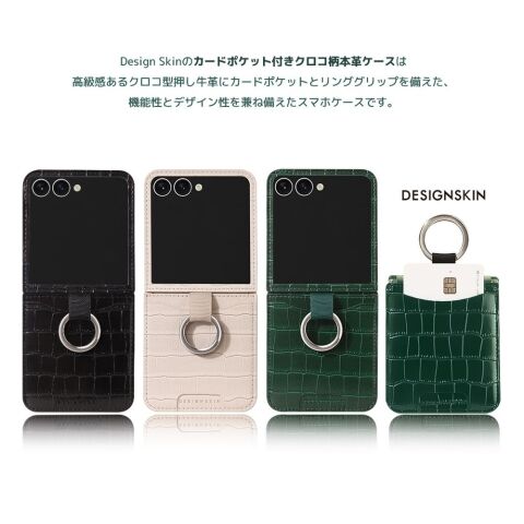 ◆Design Skinのカードポケット付きクロコ柄本革ケース