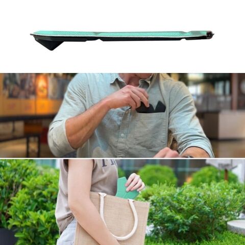 薄さわずか5mm。卵1個より軽い38gの軽量設計で、圧倒的な携帯性を誇ります。