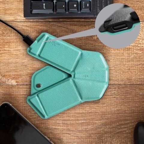 USB-Cポートで充電可能です。使用せずに一定時間が経過すると、自動的にスリープモードに入り、バッテリー消費を防ぎます。