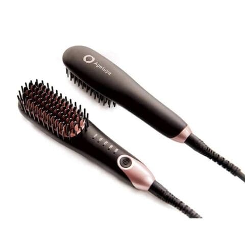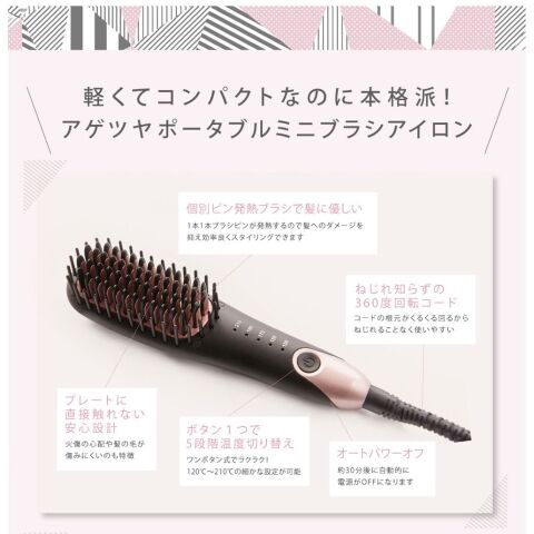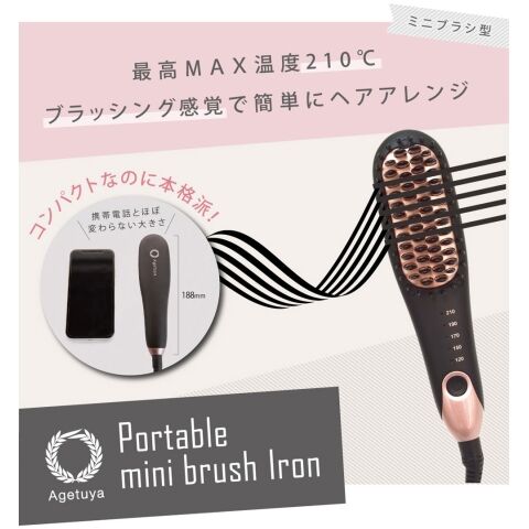 アゲツヤ ヘアアイロン(ブラック) AGETUYA ポータブルミニブラシヘアイロン [交流(コード)式] QS-17108 【返品種別A】