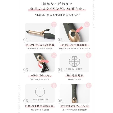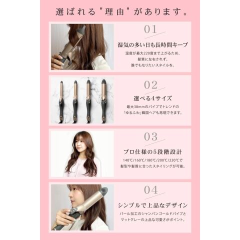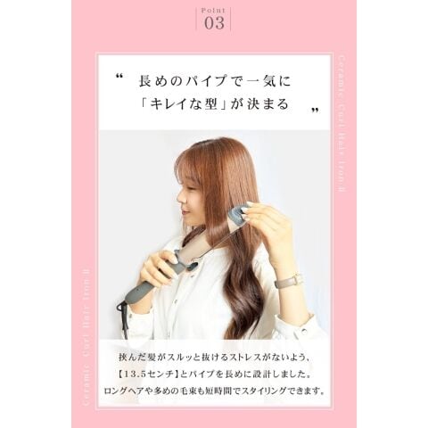 220℃の高温でつくるカールヘアは髪の芯から温めるためカールがしっかり持続します。