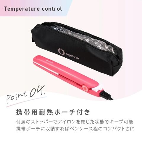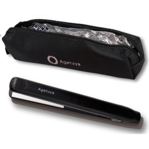 アゲツヤ ヘアアイロン(ブラック) AGETUYA ポータブルミニアイロン 耐熱ポーチ付き [交流(コード)式] HS100-3FB 【返品種別A】