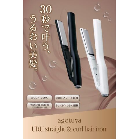 アゲツヤ ヘアアイロン(ホワイト) AGETUYA URU ストレートヘアアイロン [交流(コード)式] AG-0006-WH 【返品種別A】