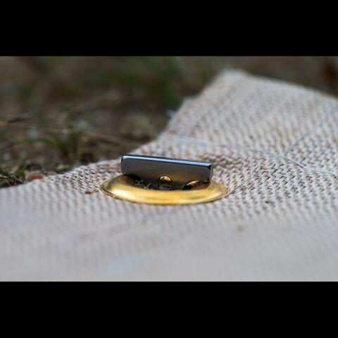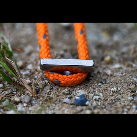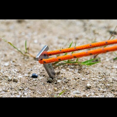 『剱』ペグのヘッド形状はT字型になっており、ペグダウンした際に地面やハトメからの飛出しが少なくなる設計にしております。