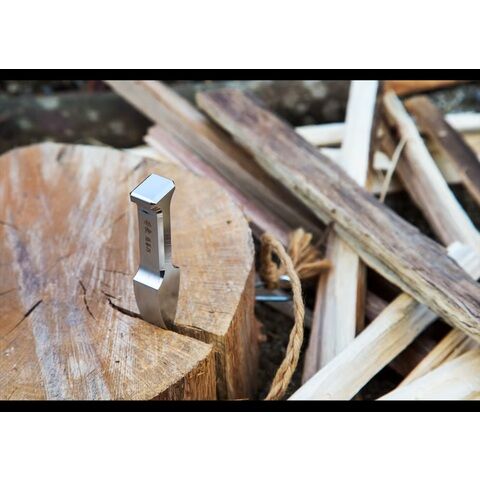 キャンプ用に設計された薪割りクサビ『苦無』(くない)でございます。この苦無のコンセプトは『軽く持ち運びやすいクサビ』です。