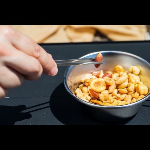 これにより2本の串が鋏(トング)のような形状となり、刺すだけではなく食材をつかむことが可能です。