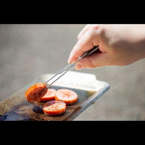 この串刀は串として「刺す」用途はもちろん、オプション品にて串刀2本を結合すればトングのように「つかむ」、「はさむ」動作も行うことが出来るようになります。
