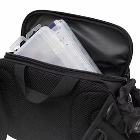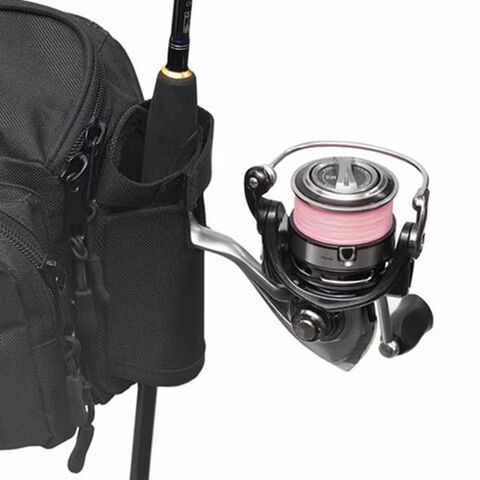 ◆ペットボトルホルダー、ロッドホルダー、ペンチホルダーが標準装備されたウェストバッグ。