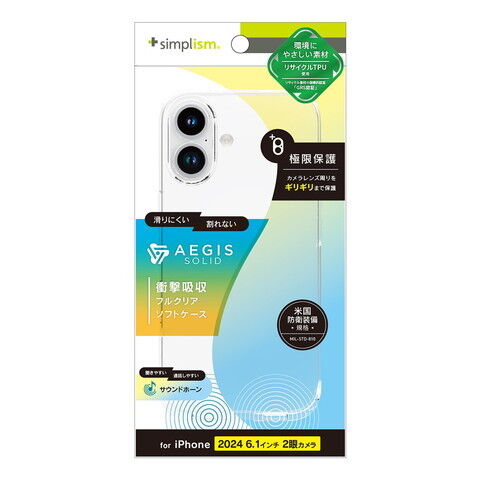 トリニティ iPhone 16用 [Aegis Solid] 超精密設計フルカバーTPUケース(クリア) Simplism(シンプリズム) TR-IP24M2-AGSL-CL 【返品種別A】
