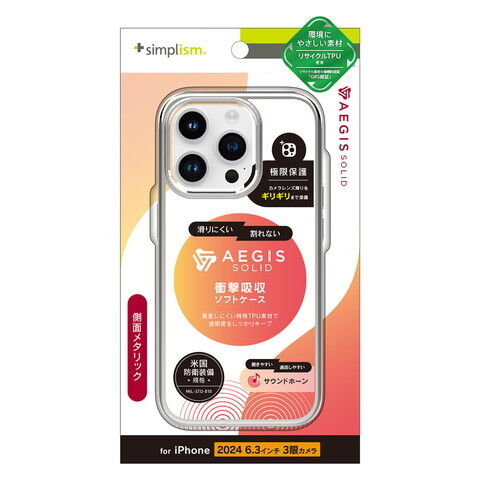 トリニティ iPhone 16 Pro用 [Aegis Solid] 超精密設計フルカバーTPUケース(メタリックシルバー) Simplism(シンプリズム) TR-IP24M3-AGSL-CLSV 【返品種別A】