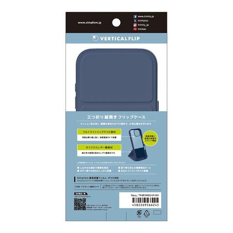 トリニティ iPhone 16 Pro用 [Vertical Flip] 縦開き背面クリアフリップケース(ネイビー) Simplism(シンプリズム) TR-IP24M3-VF-NV 【返品種別A】