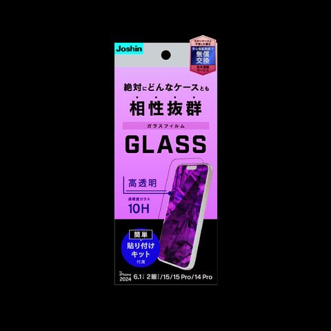 トリニティ iPhone 16 / 15 / 15 Pro / 14 Pro用 絶対にどんなケースとも相性抜群 高透明 画面保護強化ガラス【Joshinオリジナルモデル】 JO-IP24M2-GLS-PCC 【返品種別A】