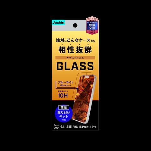 トリニティ iPhone 16 / 15 / 15 Pro / 14 Pro用 絶対にどんなケースとも相性抜群 黄色くないブルーライト低減 画面保護強化ガラス 光沢【Joshinオリジナルモデル】 JO-IP24M2-GLS-PB3CC 【返品種別A】
