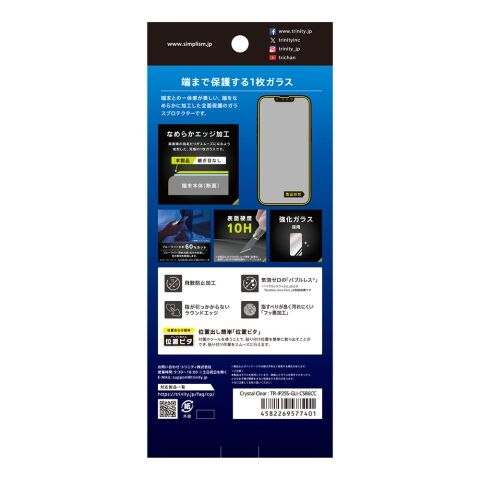 トリニティ iPhone 16e/14/13/13 Pro用 フルカバー 60%ブルーライト低減 画面保護強化ガラス 位置ピタ 光沢 Simplism(シンプリズム) TR-IP25S-GLI-CSB6CC 【返品種別A】