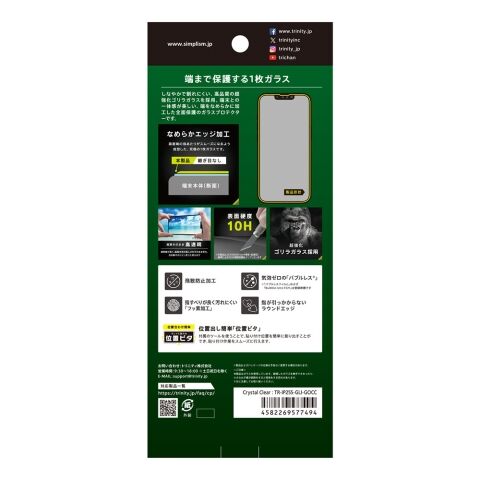 トリニティ iPhone 16e/14/13/13 Pro用 フルカバー ゴリラガラス 高透明 画面保護強化ガラス 位置ピタ Simplism(シンプリズム) TR-IP25S-GLI-GOCC 【返品種別A】