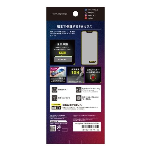 トリニティ iPhone 16e/14/13/13 Pro用 [Gaming Glass Max] フルカバー 指滑り最強 反射防止 ゲーム専用ガラス 位置ピタ Simplism(シンプリズム) TR-IP25S-GLGI-SEAG 【返品種別A】