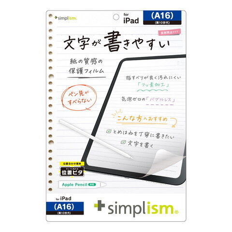 トリニティ iPad(A16 / 第10世代)用 上質紙そのままの書き心地 画面保護フィルム 位置ピタ 反射防止 Simplism(シンプリズム) TR-IPD2510-PFI-PLAGF 【返品種別A】